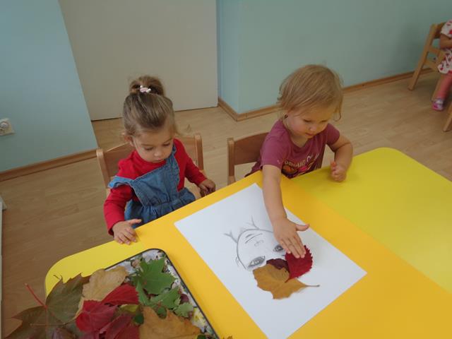 Na koniec zajęć maluszki wspólnie wykonały pracę plastyczną”Pani Jesień”,każde dziecko przykleiło kolorowego liścia. Dzień minął nam w miłej atmosferze pełnej radości i ciekawych przeżyć.