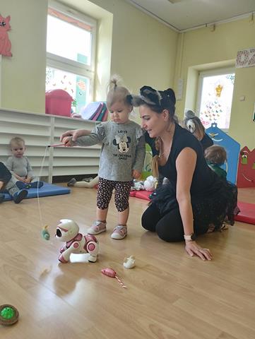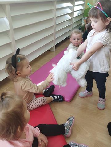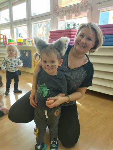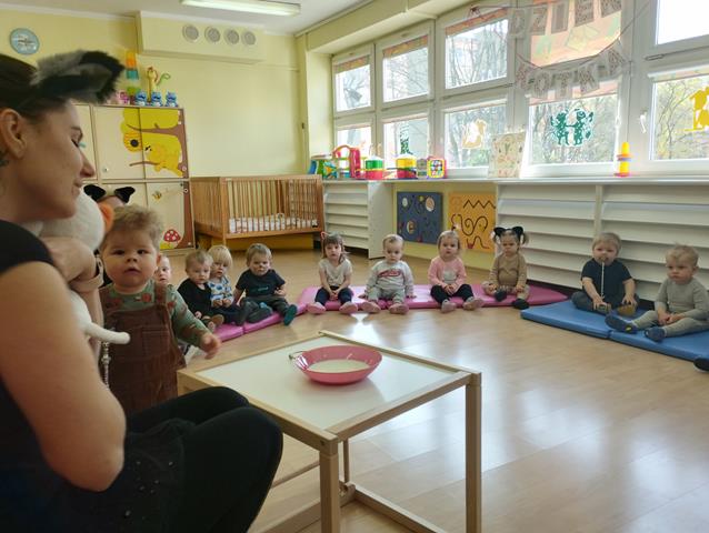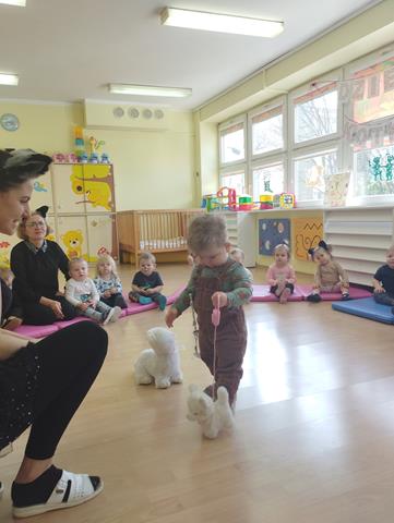 W tym nietypowym dniu dzieci z grupy Raczków bawiły się wesoło z kotkiem Puszkiem. Maluszki poznały wygląd i zwyczaje tego sympatycznego zwierzątka, nie zabrakło też radosnych zabaw przy muzyce do piosenek pt. „Kotek kłopotek”, „Wlazł kotek na płotek”, „Kotek Puszek z czarną łatką” oraz „Kotku-co ty robisz dziś”. Dzieci wysłuchały z zaciekawieniem inscenizacji wiersza „W pokoiku na stoliku” oraz wykonały piękną pracę plastyczną pt „Kotek Puszek”. Celem zajęć było poszerzenie wiedzy maluszków na temat kotków, rozwijanie empatii i uwrażliwienie na potrzeby zwierząt.