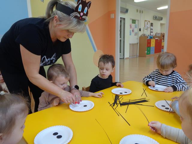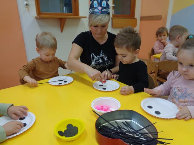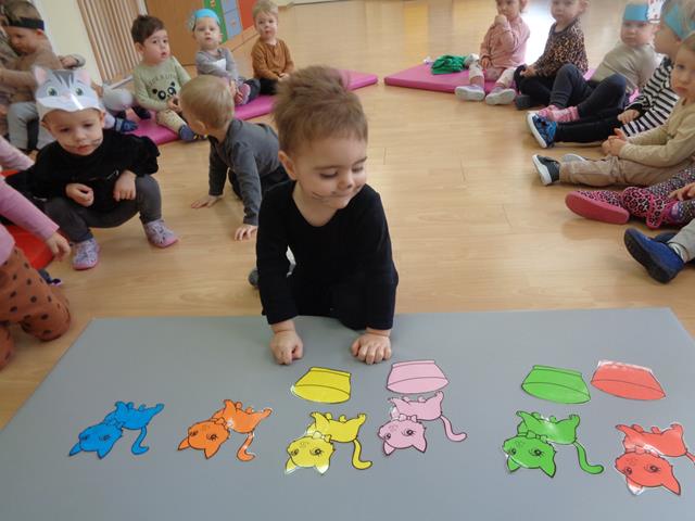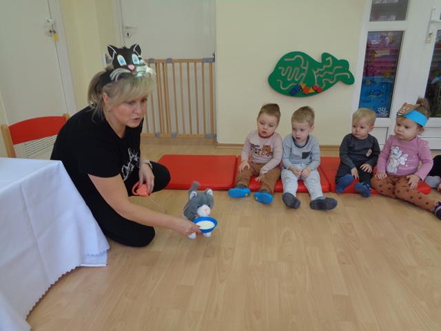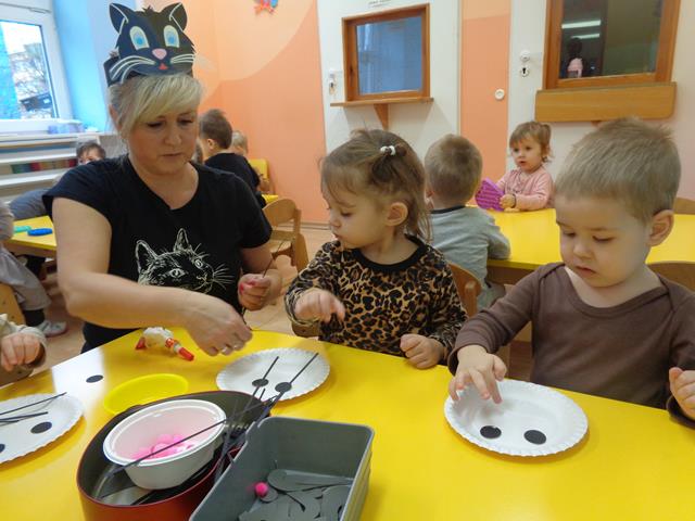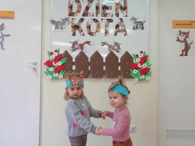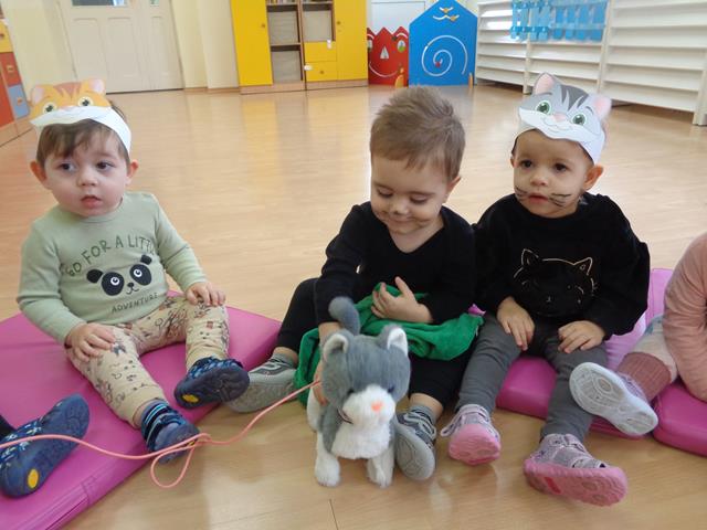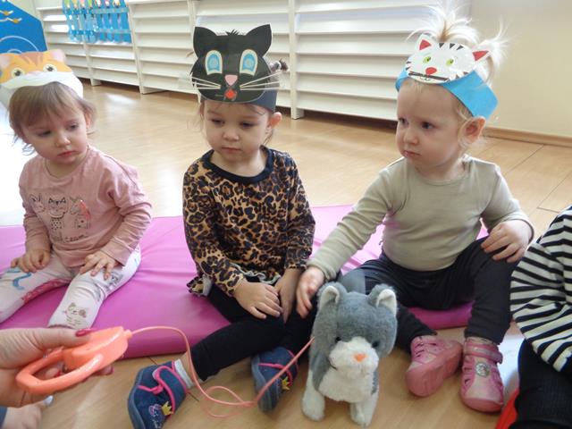 W tym nietypowym dniu dzieci z grupy Kaczuszek bawiły się wesoło z kotkiem. Maluszki poznały wygląd i zwyczaje tego sympatycznego zwierzątka, nie zabrakło też radosnych zabaw przy muzyce do piosenek pt. „Kotek kłopotek” oraz „Puszysty kot”. Dzieci wysłuchały z zaciekawieniem wiersza „W pokoiku na stoliku” oraz mogły pogłaskać interaktywnego kotka. Maluszki wykonały też piękne, kocie prace plastyczne, które polegały na przyklejeniu zwierzątku oczek, uszek i wąsików. Celem zajęć było poszerzenie wiedzy maluszków na temat kotków, rozwijanie empatii i uwrażliwienie na potrzeby zwierząt.