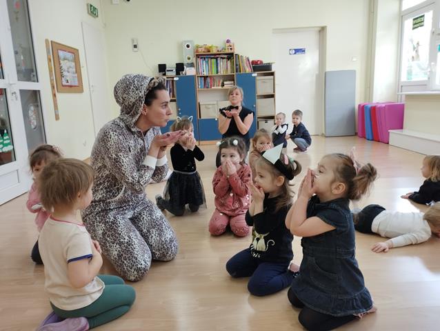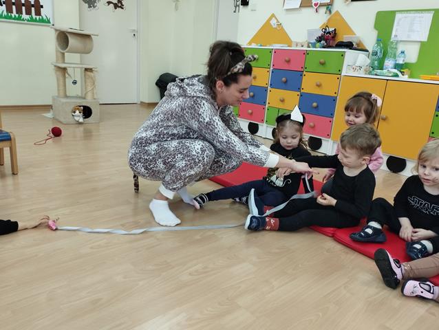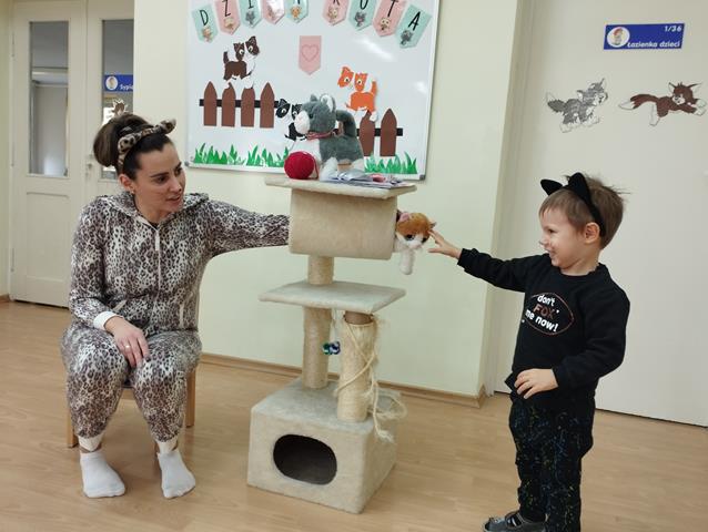 To nietypowe święto stało się okazją do poszerzenia wiedzy maluszków na temat kotków, rozwijania empatii i uwrażliwienia na potrzeby zwierząt. Dzieci wiedzą jak wygląda kotek, znają zwyczaje tych zwierzątek. Maluszki uczestniczyły w różnorodnych “kocich zabawach”: naśladowały kociaki, uczestniczyły w zabawach ruchowo-naśladowczych “Kotku,kotku” “Kotki i myszki” , poznały zasady prawidłowej opieki nad zwierzątkiem. W czasie zabaw plastycznych rozwijaliśmy aktywność twórczą maluszków – dzieci w pomysłowy sposób wykonały pracę plastyczną techniką stemplowania farbkami.