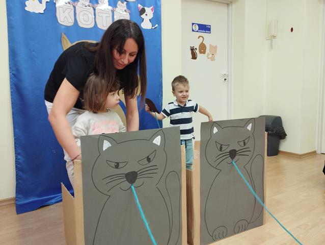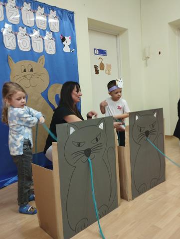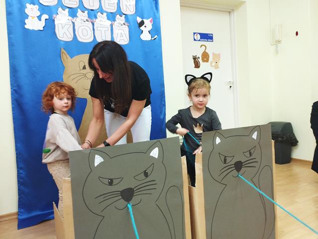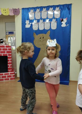 W grupie „Krasnali” bardzo uroczyście obchodziliśmy to nietypowe święto. Z tej okazji zaprosiliśmy do naszego żłobka dzieci z Przedszkola Nr 9. Spotkanie rozpoczęło się wspólną piosenką pt. „My jesteśmy kotki dwa” oraz wierszykiem „W pokoiku na stoliku”. Nie zabrakło również wesołych „kocich zabaw”, tańców, zagadek oraz zawodów, podczas których dzieci wykazały się dużym sprytem i pomysłowością. Zajęcia zakończyliśmy wspólną pracą plastyczną, której motywem przewodnim był kot. Głównym celem naszych zabaw było przede wszystkim rozwijanie empatii, uwrażliwienie na potrzeby zwierząt, rozwijanie aktywności twórczej, ruchowej, plastycznej, muzycznej oraz integracji z dziećmi.