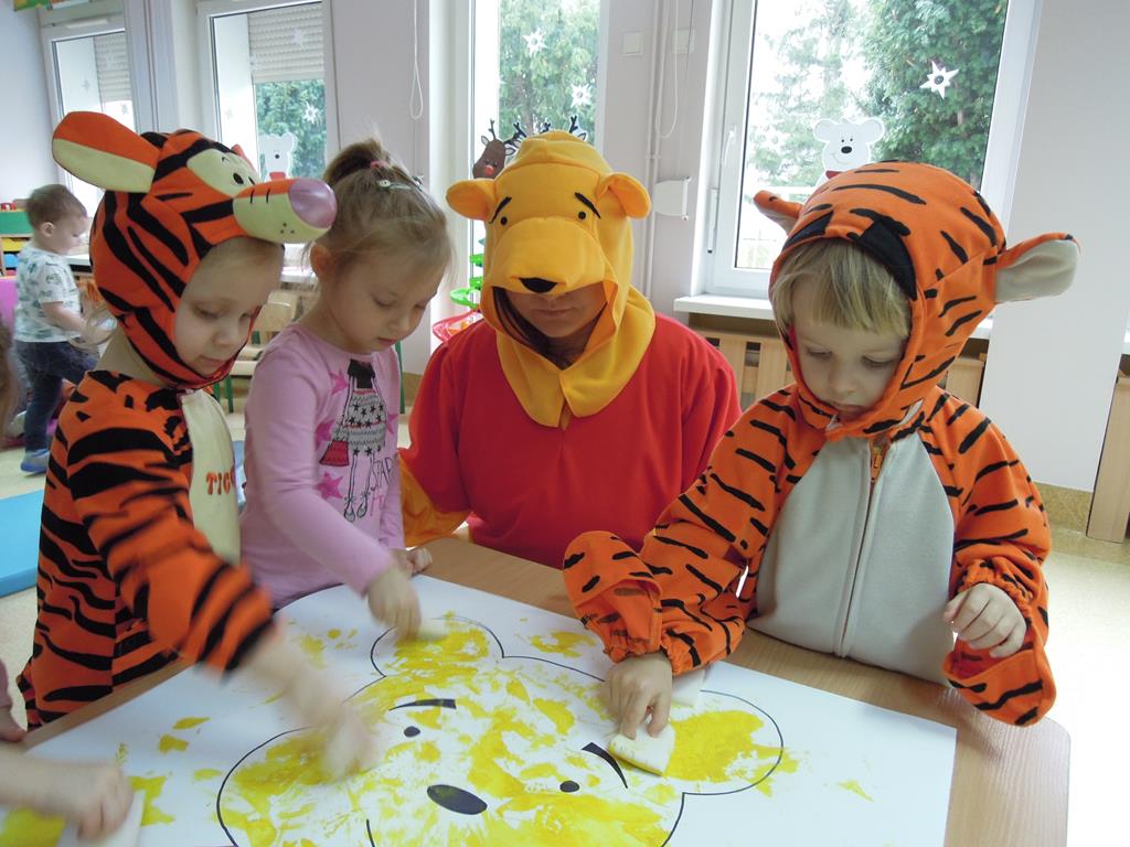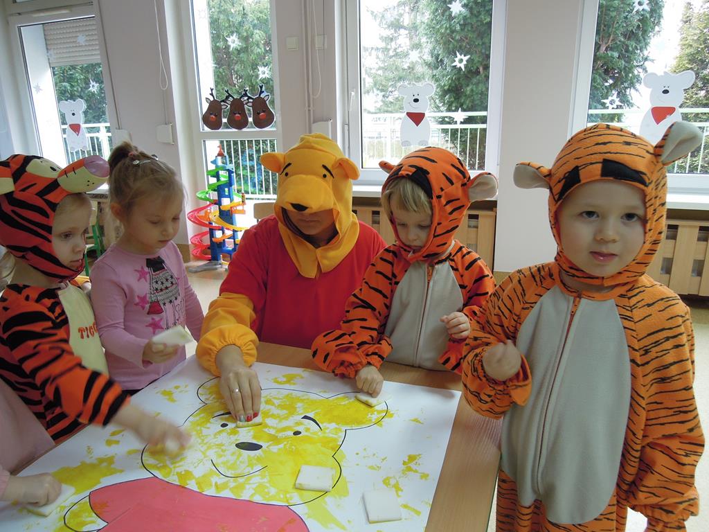 Międzynarodowy Dzień Kubusia Puchatka jest doskonałą okazją do przypomnienia sobie o tym niezwykłym bohaterze i przeczytania opowiadań o jego przygodach . Kubuś Puchatek to pogodny z natury, oddany przyjaciel wszystkich dzieci. Zawitał dziś do naszego żłobka. Wspólnie z dziećmi tańczył i śpiewał, a w grupie ,, Muchomorków” wykonał pracę plastyczną. Na pożegnanie dzieci otrzymały od Kubusia drobny upominek.