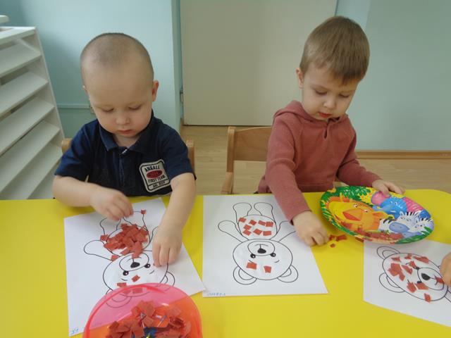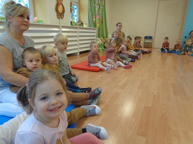 W listopadzie maluszki z grupy Krasnale obchodziły przesympatyczne święto – Dzień Misia. Dzień był pełen uśmiechu i dobrej zabawy. Dzieci tańczyły w rytm znanych piosenek o misiach:”Pluszowy miś”, „Jadą, jada misie”czy „Stary niedźwiedź”. Maluszki z uwagą obejrzały teatrzyk pt.”Miś i leśne zwierzęta” i z zaciekawieniem wysłuchały bajeczek oraz opowiastek o misiach. Maluszki pokonywały tor przeszkód idąc po śladach do głodnego misia,którego chętnie karmiły papierowymi plasterkami miodu. W czasie zabaw plastycznych rozwijaliśmy u dzieci wyobraźnię i inwencję twórczą. Maluszki wykonały pracę plastyczną wyklejając kawałkami bibuły postać misia.