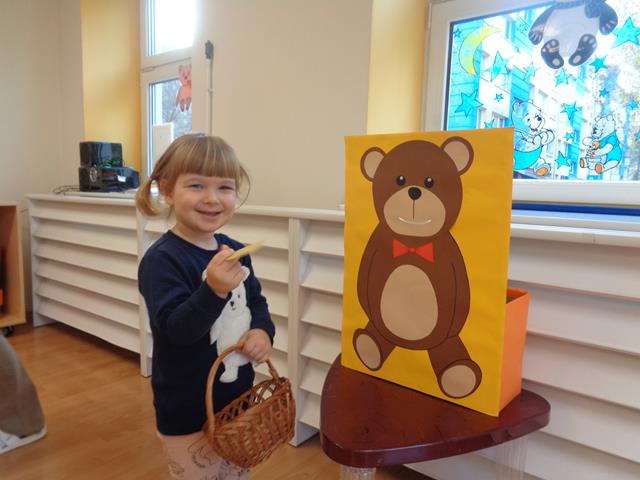 Zajęcia miały na celu wzbudzenie sympatii i radości do pluszowej zabawki misia oraz wzbogacenie wiedzy na temat zwyczajów prawdziwych niedźwiedzi. Zabawy zachęcały do wykazywania się śmiałością i zręcznością,a także rozwijały wyobraźnię i wzbogacały słownictwo.