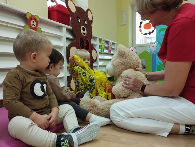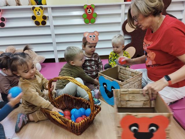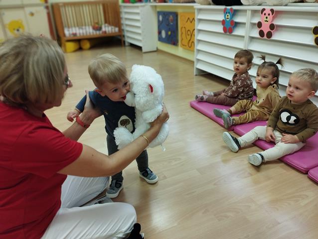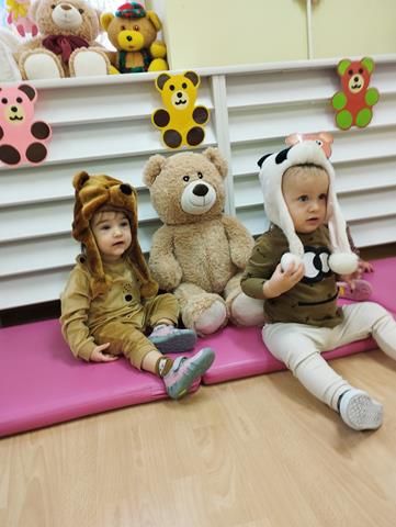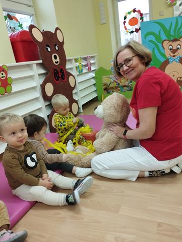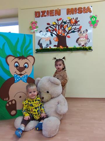 Maluszki z grupy „Raczków” wesoło obchodziły “Dzień Pluszowego Misia”. Dzieci ubrane były w misiowe barwy. Z chęcią uczestniczyły w wielu radosnych zabawach. Maluszki porównywały wielkości i kolory misiów rozwijając mowę, słownictwo i spostrzeganie. Dzieci segregowały piłeczki do koszów, oznaczonych kolorami: czerwonym i niebieskim tworząc matematyczne zbiory. Małe „Raczki” brały udział w zabawach ruchowych naśladując zachowanie misiów (chodzenie, jedzenie miodu i spanie) ćwicząc przy tym sprawność dużych grup mięśniowych.