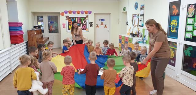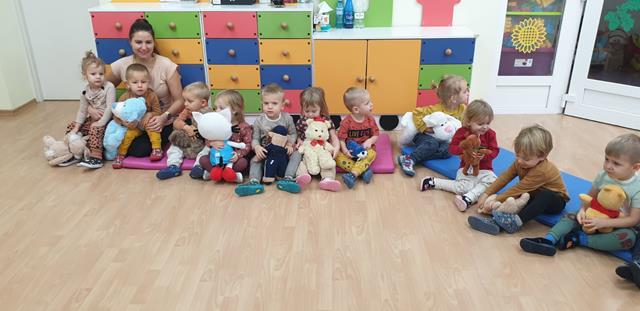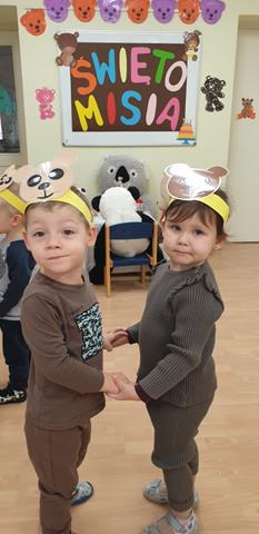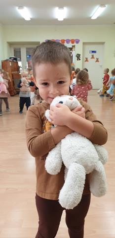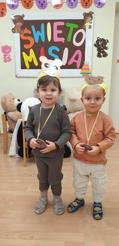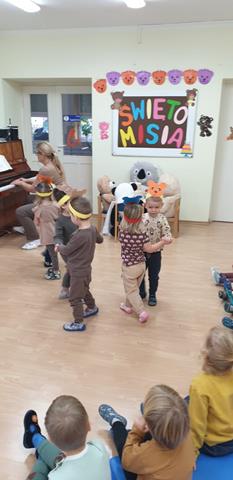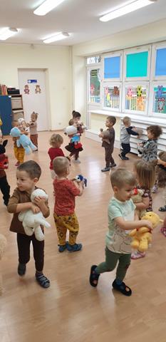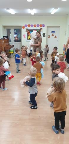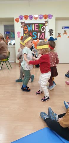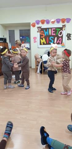 W listopadzie maluszki z grupy Krasnale obchodziły przesympatyczne święto – Dzień Misia. Dzień był pełen uśmiechu i dobrej zabawy. Dzieci tańczyły w rytm znanych piosenek o misiach: „Mały miś”,” Pokochaj pluszowego misia”, “Jadą, jadą misie”. Maluszki urządziły misiom urodzinowe przyjęcie, byli goście, prezenty i odśpiewane „Sto lat”, no i oczywiście zabawa taneczna z udziałem przytulanek przyniesionych przez dzieci z domu. W czasie zabaw plastycznych rozwijaliśmy u maluszków wyobraźnię i inwencję twórczą – dzieci chętnie wykonały pracę plastyczną, doklejając oczy i uszka misiom.