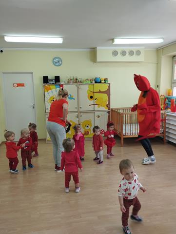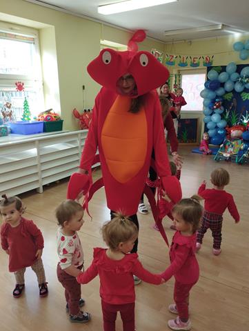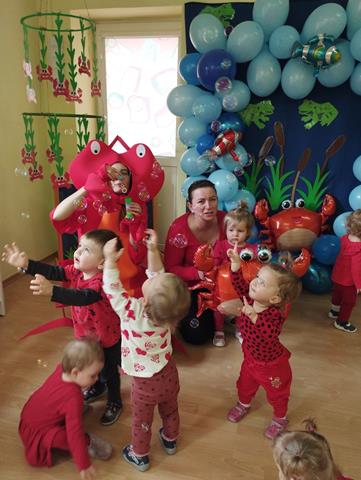 Dzieci z grupy I uroczyście obchodziły Dzień Raczka. Maluszki ubrane na czerwono z zaciekawieniem obejrzały przedstawienie muzyczne “Idzie rak” i dowiedziały się jak wygląda raczek, jaki ma kolor i jak się porusza. Maluszki wzięły także udział w zabawach muzycznych i tanecznych, które stymulują zmysł równowagi, wzroku i słuchu oraz sprzyjają integracji dzieci w grupie. Nie zabrakło zabawy plastycznej – dzieci wykleiły piękne i wesołe raczki.