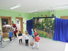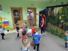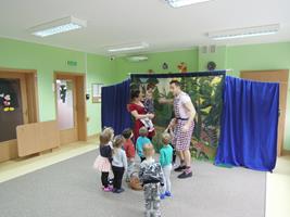 ,, Łakocie dla Jasia i Małgosi ’’ to adaptacja baśni Grimm, którą przedstawił naszym maluszkom teatr żywego aktora. To wspaniałe przedstawienie teatralne , z przesłaniem, że jedzenie w nadmiarze słodyczy szkodzi i jest zgubne dla zdrowia. Dzieci z radością uczestniczyły w tym ciekawym, interaktywnym widowisku.