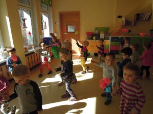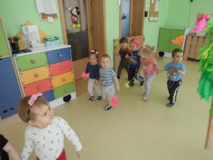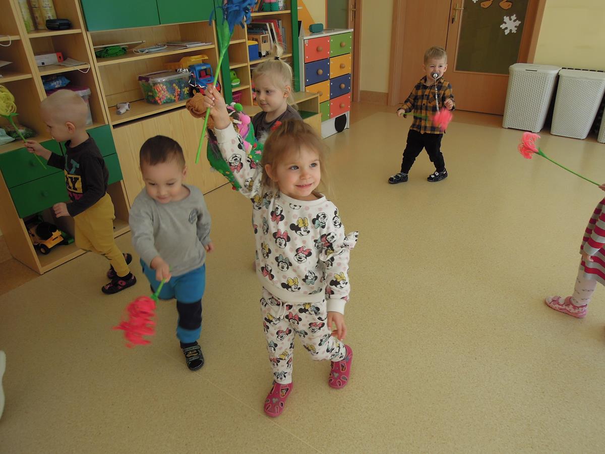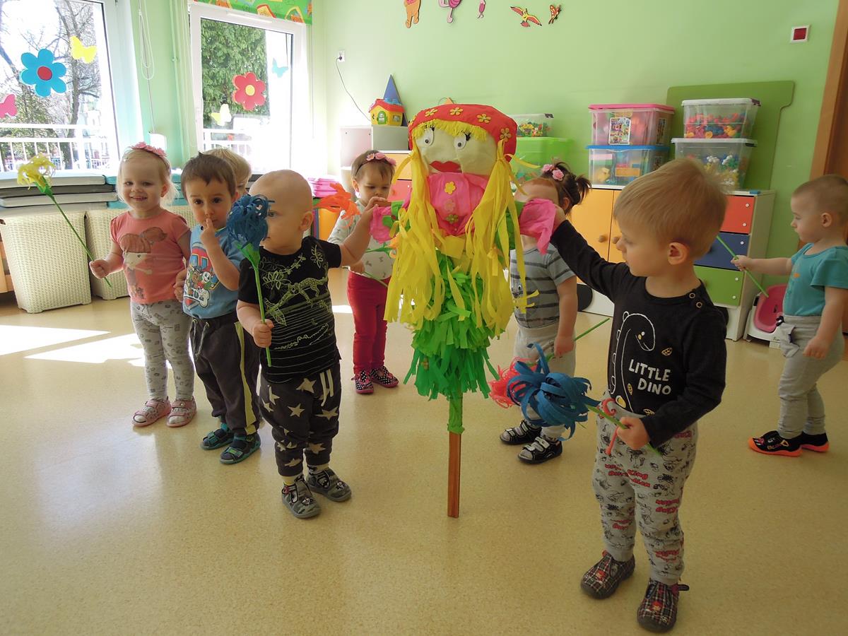 Dziś pierwszy dzień wiosny! Maluszki z radością powitały tę przepiękną porę roku kiedy przyroda budzi się do życia. Dzieci śpiewały piosenki o wiośnie , tańczyły z kukiełką przedstawiającą panią Wiosnę. A o zimie – nikt już w żłobku nie pamięta…
