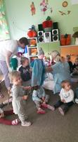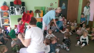 Po raz pierwszy, w tym roku żłobkowym nasze maluszki obejrzały spektakl teatru lalek. Przedstawienie opowiadało o krainie Uciekałków , gdzie najmłodszy z mieszkańców miał problemy z wyraźnym mówieniem. Wynikało z tego dużo kłopotów. Z opresji uratowała go wróżka Nasturcja, która ćwiczyła z nim poprawną wymowę.