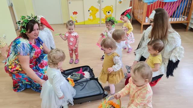 Wiosna to pora roku, na którą wszyscy czekamy z utęsknieniem. Zmiany w przyrodzie dostarczają dużo radości, świat pięknie się zieleni, pojawiają się pierwsze wiosenne kwiaty, słychać śpiew ptaków. W związku z nadejściem nowej pory roku dzieci z grupy Raczków pożegnały Zimę i radośnie przywitały Wiosnę. Maluszki chętnie uczestniczyły w zabawach muzycznych, z zaangażowaniem zbierały kwiatki do koszyczka przy piosenkach „Wiosna” “ Kwiatki ,bratki” oraz wykonały pracę plastyczną ozdabiając spódnicę Pani Wiosny. W czasie zabaw wzbudzaliśmy u dzieci ciekawość otaczającym światem,wzbogacaliśmy słownictwo oraz rozwijaliśmy poczucie rytmu. Ten dzień upłynął nam kolorowo i bajecznie.