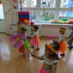 W związku z nadejściem nowej pory roku maluszki z grupy Muchomorków pożegnały zimę i wyruszyły na poszukiwanie wiosny. Odgłosami dzwoneczków obudziły Panią Wiosnę i wspólnie tańcami ze śpiewem radowały się z jej przybycia.