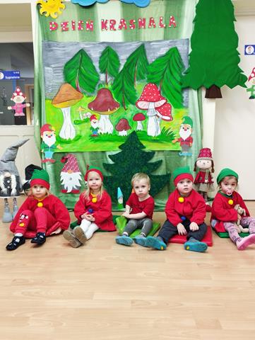 “Krasnoludki fajne są, dużo robią, mało śpią” – pod takim hasłem maluszki z grupy IV obchodziły uroczyście Dzień Krasnala. Świętowanie rozpoczęło się od obejrzenia mini-teatrzyku, który obudził ciekawość dzieci. Maluszki dowiedziały się kim są krasnale, jak wyglądają oraz gdzie można je spotkać. Dzieci bawiły się wesoło w czasie zajęć muzyczno-ruchowych rozwijających poczucie rytmu i wrażliwość słuchową, chętnie ilustrowały ruchem piosenki “My jesteśmy Krasnoludki”.