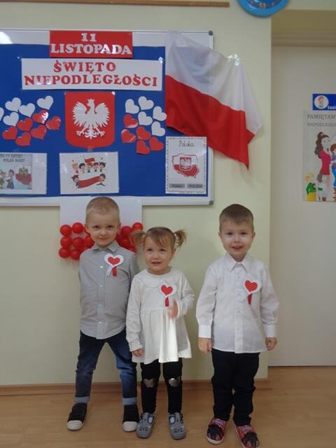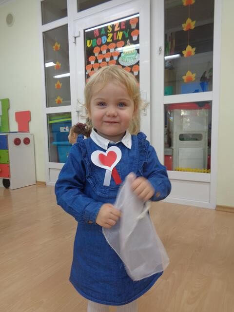 Święto Niepodległości to wyjątkowy czas dla każdej Polki i Polaka. Z tej okazji dzieci z grupy Krasnali ubrane były w galowe stroje oraz miały przypięte kotyliony.