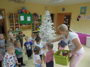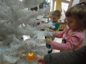 Ubieranie choinki to jedna z najpiękniejszych tradycji świątecznych. Trudno wyobrazić sobie Boże Narodzenie bez świątecznego drzewka. Dzieci z grupy III ,, Muchomorki” ubierały żłobkową choinkę. Dekorowanie jej sprawiło wszystkim wiele radości. Już niedługo będą święta i czas rodzinnych spotkań.