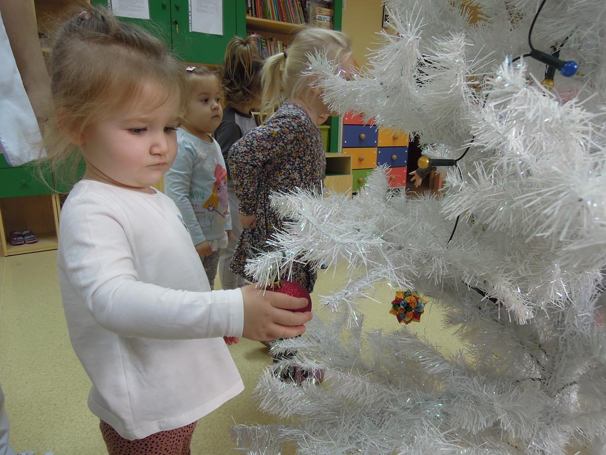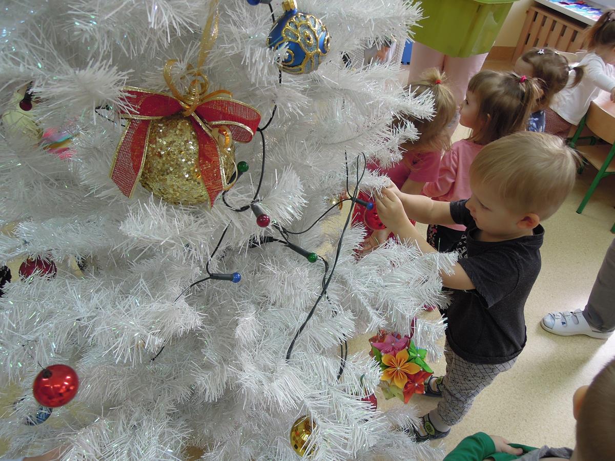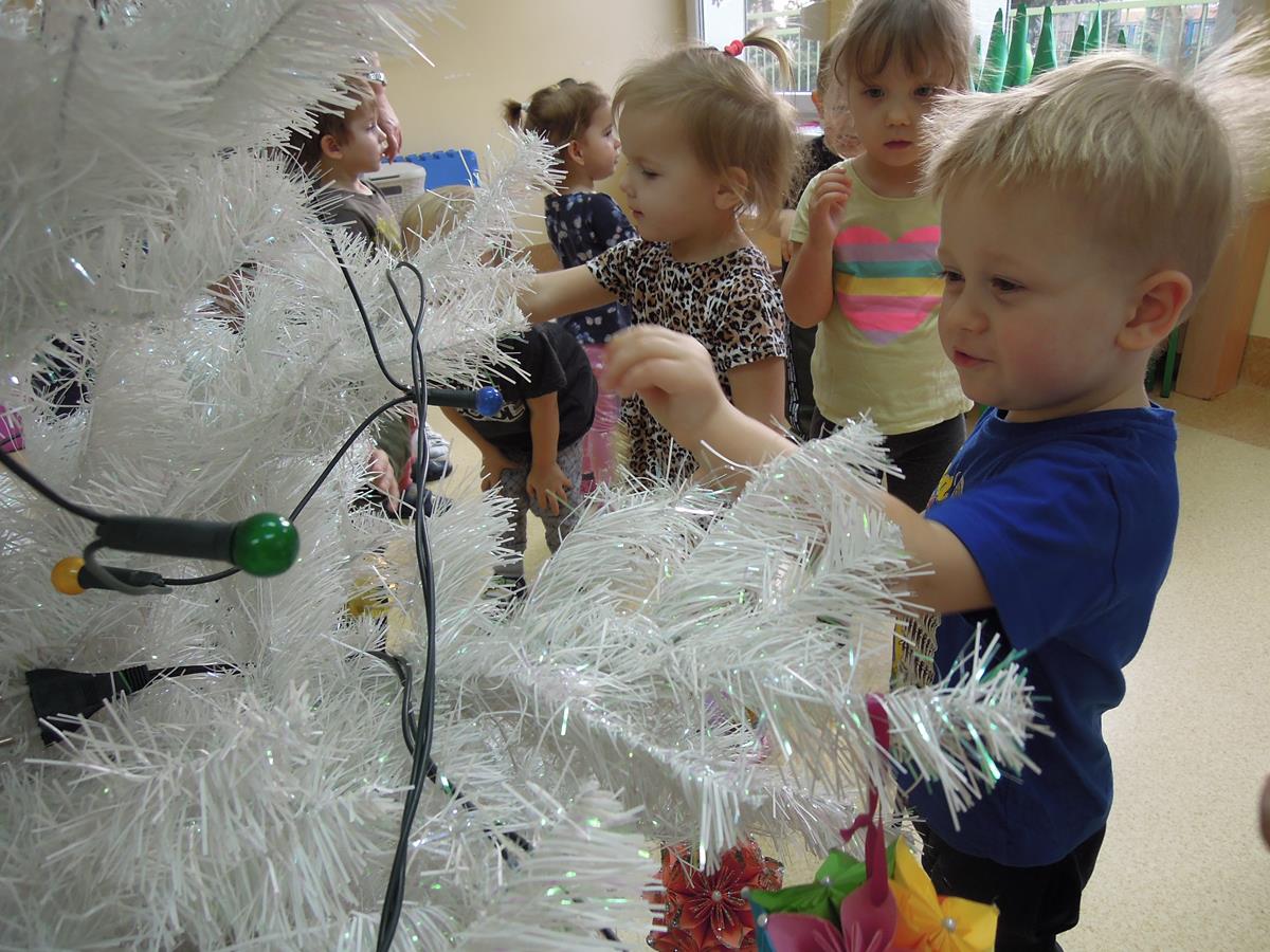 Ubieranie choinki to jedna z najpiękniejszych tradycji świątecznych. Trudno wyobrazić sobie Boże Narodzenie bez świątecznego drzewka. Dzieci z grupy III ,, Muchomorki” ubierały żłobkową choinkę. Dekorowanie jej sprawiło wszystkim wiele radości. Już niedługo będą święta i czas rodzinnych spotkań.