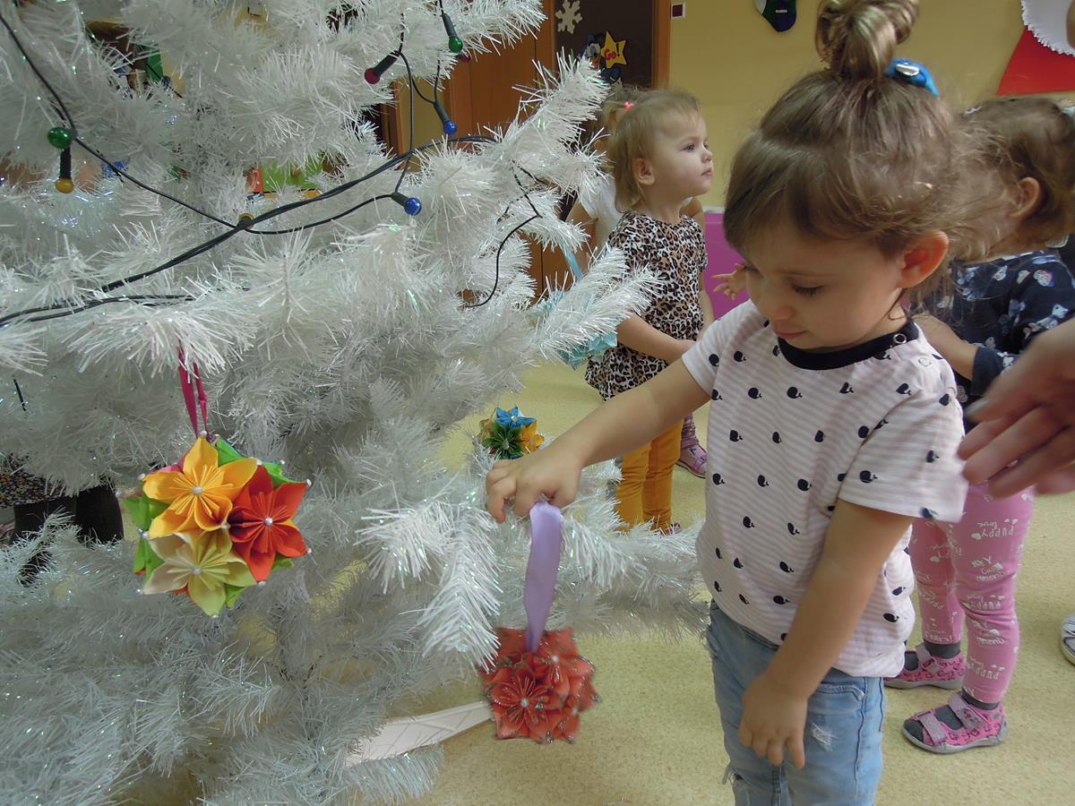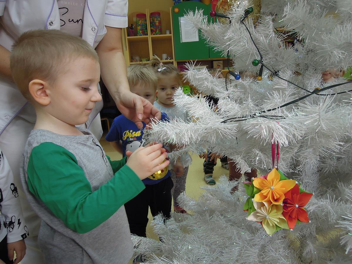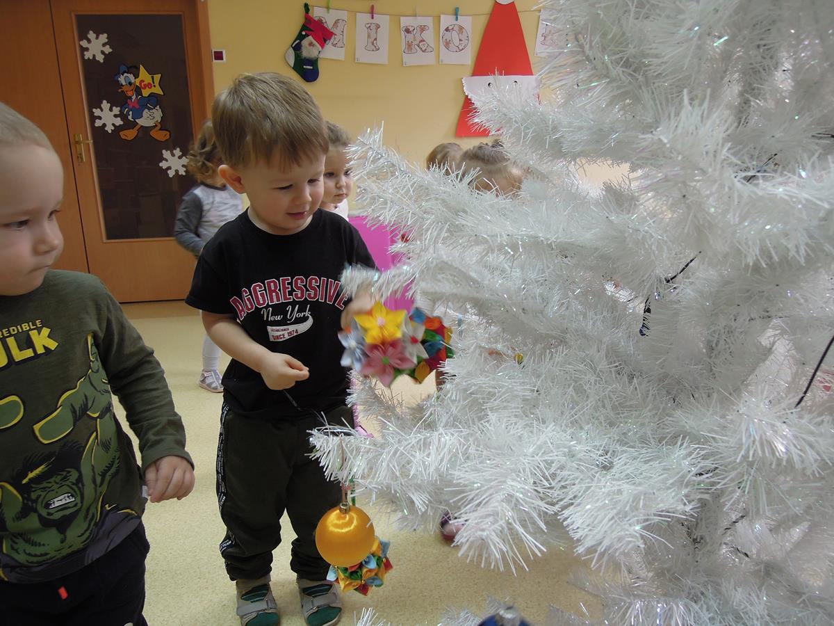 Ubieranie choinki to jedna z najpiękniejszych tradycji świątecznych. Trudno wyobrazić sobie Boże Narodzenie bez świątecznego drzewka. Dzieci z grupy III ,, Muchomorki” ubierały żłobkową choinkę. Dekorowanie jej sprawiło wszystkim wiele radości. Już niedługo będą święta i czas rodzinnych spotkań.
