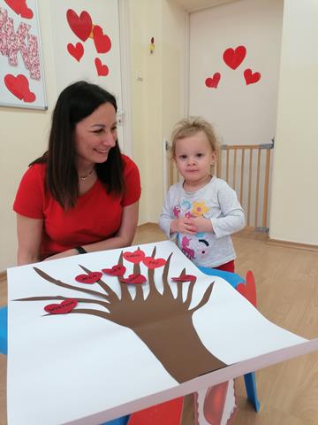 Maluszki wykonały również pracę plastyczną, której motywem przewodnim były serduszka oraz wysłały kartki do ukochanych osób.