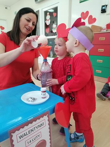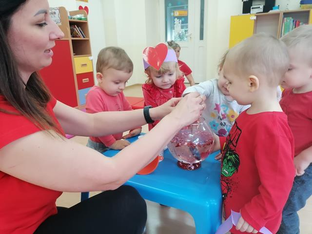 Dzieci z grupy „Kaczuszki” wesoło świętowały Walentynki. Wyjątkowość tego dnia podkreśliły stroje w kolorze czerwonym oraz liczne atrakcje.