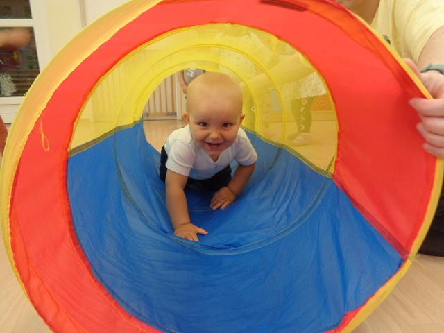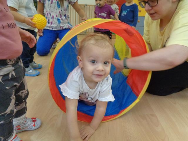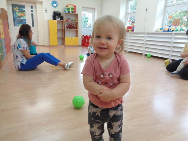 W czasie pierwszych dni w żłobku maluszki z grupy Kaczuszek przyzwyczajały się do nowego otoczenia, poznawały panie opiekunki i siebie nawzajem. Dzieci z chęcią uczestniczyły w zabawach muzyczno-ruchowych do piosenek pt.”Koła autobusu” oraz “Kierowcy”, z zainteresowaniem bawiły się klockami i piłeczkami, z radością przechodziły przez kolorowy tunel.W czasie zabaw muzycznych do piosenek pt.”Kolorowe listki”, “Poszła Ola na spacerek” maluszki z uśmiechem zbierały jesienne listki.