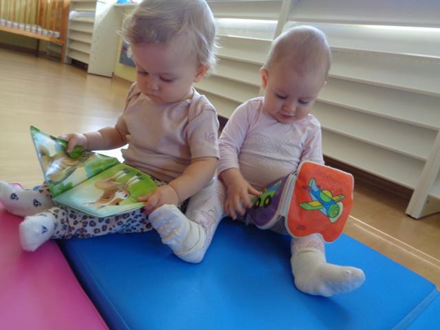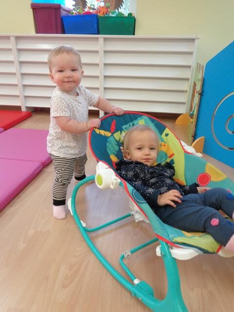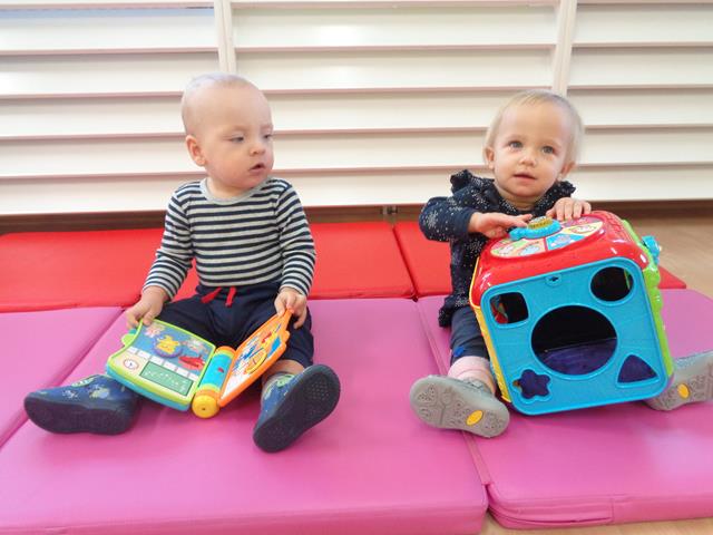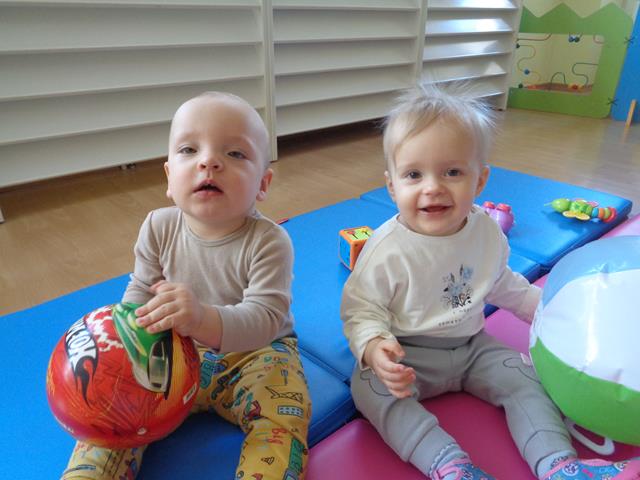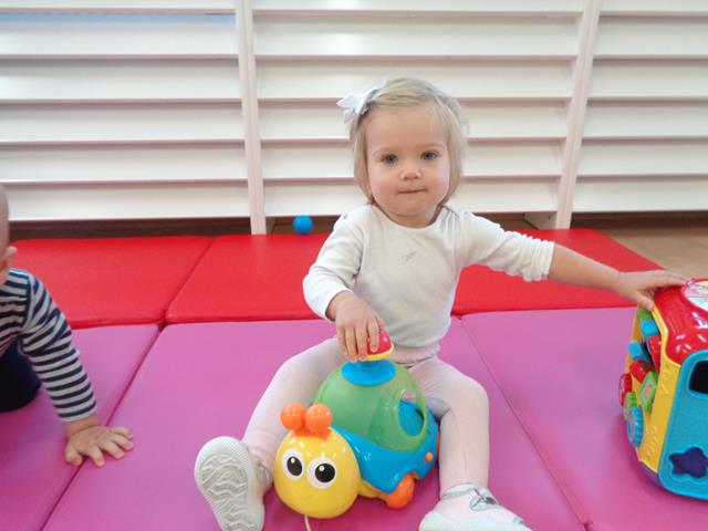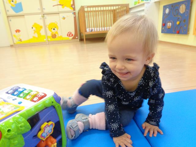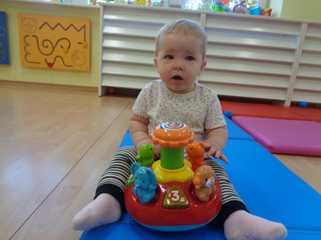 W czasie pierwszych dni w żłobku maluszki z grupy Raczków przyzwyczajały się do nowego otoczenia, poznawały panie opiekunki i siebie nawzajem. Z zaciekawieniem bawiły się kolorowymi zabawkami, oglądały bajeczki i słuchały nowych piosenek.